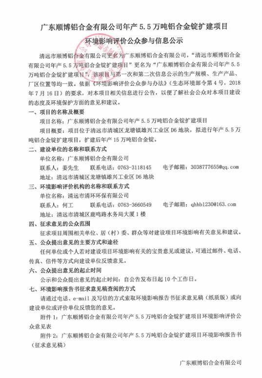 廣東順博鋁合金有限公司年產5.5萬噸鋁合金錠擴建項目環(huán)境影響報告書(征求意見稿)鏈接: https://pan.baidu.com/s/12sZ-Ry7BkuuX70teOCFETg提取碼: ui6t 復制這段內容后打開百度網盤。